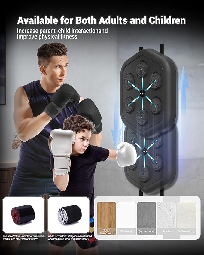 - Family-Friendly Adjustable Height: With its adjustable height feature and comes with two professional leather boxing gloves for adults and children. The MaiTuFit Music Boxing Machine is suitable for all family members, from kids to adults, ensuring a perfect fit for everyone's training needs.