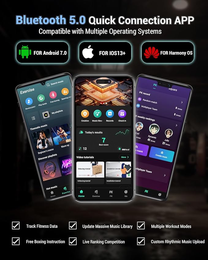 - Long-Lasting Power + Studio-Grade Sound: Equipped with a 4,000mAh high-capacity battery boosted by an intelligent control chip, it supports extended outdoor training sessions, while dual HD surround speakers pump out deep bass and crystal-clear highs, turning every strike into a rhythm-driven thrill. Whether at home or on the go, enjoy seamless rhythm with enduring battery life and surround-sound intensity—where boxing meets music in perfect harmony.