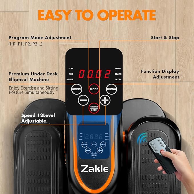 - 【LCD Display】Zakle portable under desk pedal exerciser with LCD display allows you to track speed, distance, counter, time and calories in real time. The senior-friendly seated pedal exerciser comes with a thoughtful remote control that lets you switch modes without bending over, taking the strain off your back. This means you can sit back and work or relax while still getting the workout you need!