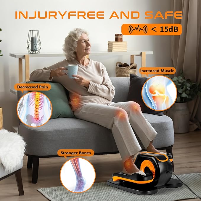 - 【Light Impact & Non Pressure】 The under desk elliptical machine is designed for sedentary office workers, seniors with leg discomfort. Performing low-impact exercises not only helps burn calories, but also builds muscle strength, promotes leg adaptations and improves joint mobility, making it a great choice for a home fitness system.