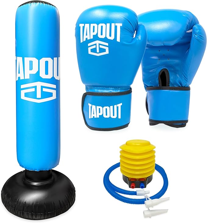 TAPOUT Kids Blue Boxing Kit: 8 oz Gloves, Inflatable Punching Bag with Pump, Mesh Carrying Bag Included