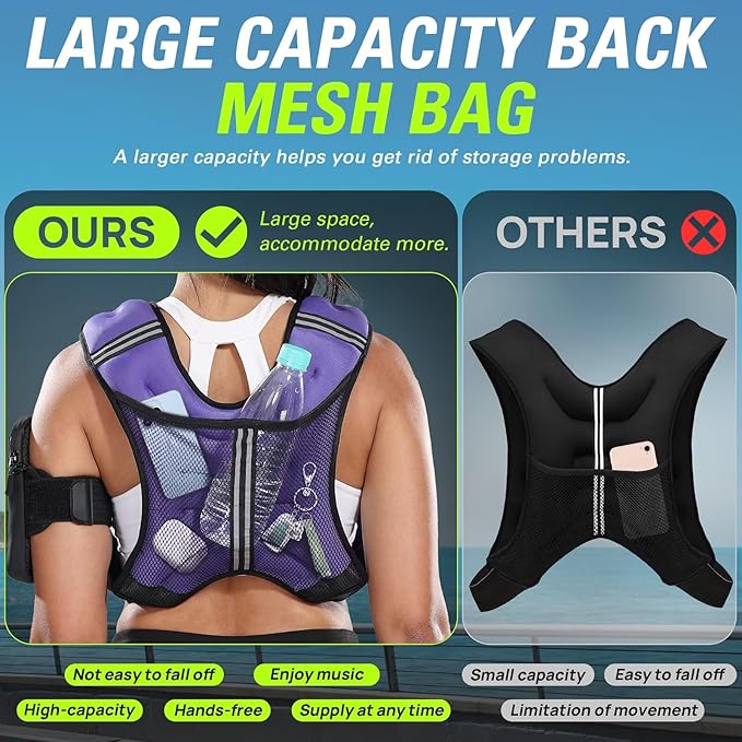 - 【UPGRADED STORAGE OPTIONS】With deep mesh pockets for easy access to your essentials, you can carry your gear effortlessly. Enjoy hands-free mobility while keeping your items organized, allowing you to focus entirely on your workout