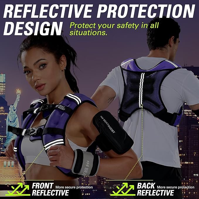 - 【ENHANCED SAFETY】Equipped with reflective strips, our vest enhances visibility during low-light conditions. Whether you're exercising at dawn or dusk, you'll feel secure knowing that you're visible to others, promoting safer outdoor workouts