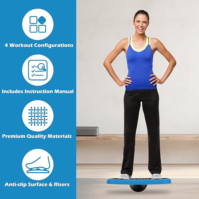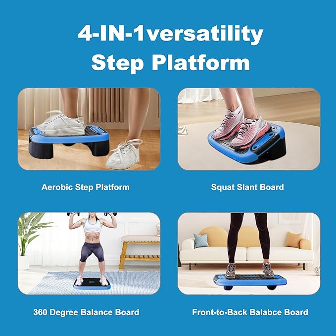 4-In-1 Aerobic Balance Board and Step Up Exercise Platform - Adjustable Multifunctional Balance Board Slant Board, Steppers for Exercise - Home Workout Non Slip Stepper Platform