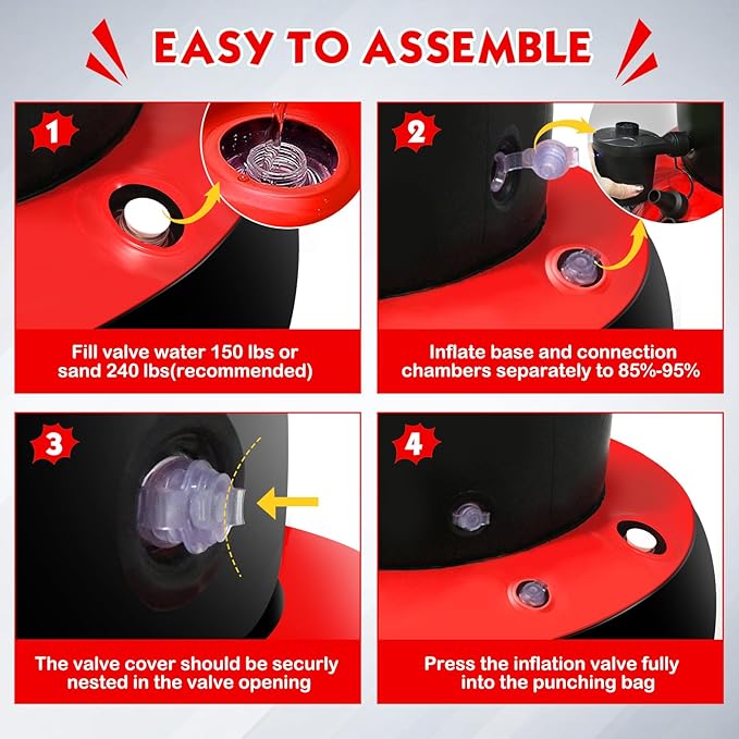 - 【Easy to Assembly】 Setting up the karate bag is quick and hassle-free. Simply fill the base with water for added stability, It's an easy process that takes just minutes to complete. Let children love sports, cultivate sports hobbies. It takes in all the emotions of the child and becomes happy when hitting.