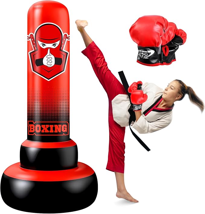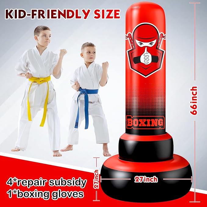 - 【Positive Energy for Your Kids】With a boxing bag, kids can release their energy. Toys should not only be used to kill children's time. Valuable toys can bring improvement. karate punching bag can exercise children's physical strength, which increases arm strength and hand-eye coordination. This will be a different gift for the Easter Birthday Party Holiday!