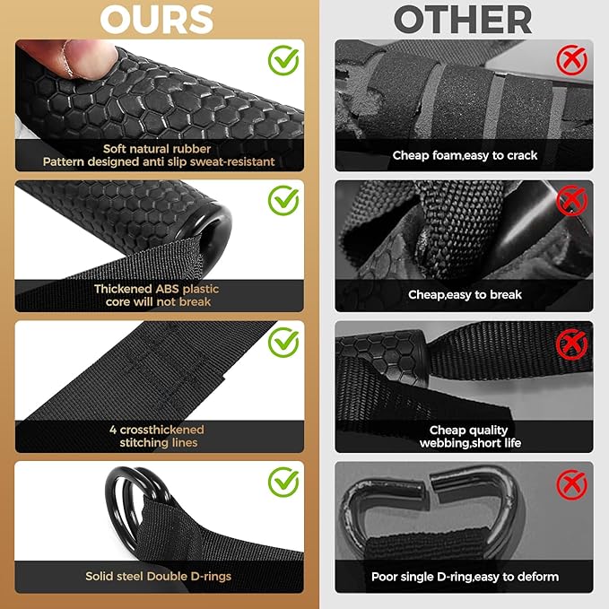 - Ultra Heavy Duty Exercise Handles- Each cable machine handles can be hold up to 660 lbs pull the above, Strong braided nylon straps, triple stitched with thick thread, ensuring they can handle intense resistance and weight without compromising on durability or safety, allowing you to focus on your workout without distractions