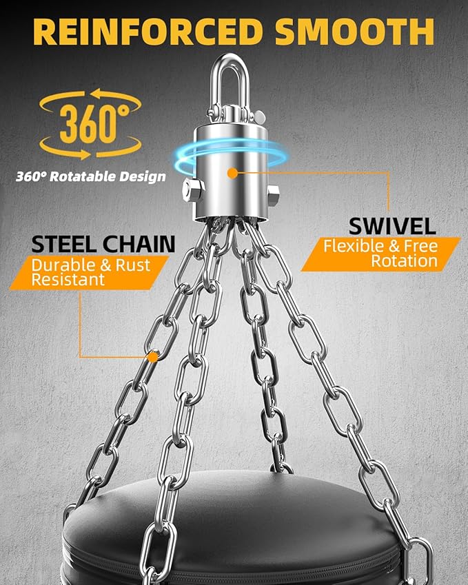 - 【Complete Installation Accessories】It comes with all essential hanging accessories for easy installation, allowing you to set up the bag wherever you want, whether it's in your home gym or outdoor area.
