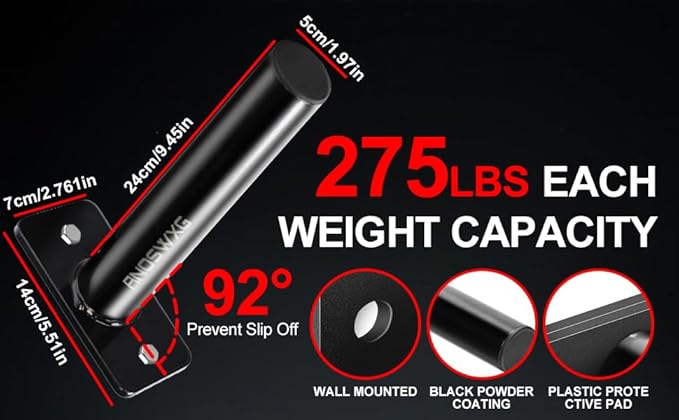 - Weight Plate Storage Rack for Home Gym - Wall-Mounted Bumper Plate Holder with Heavy Duty Steel · High Capacity Storage: Designed to hold multiple weight plates securely, perfect for organizing your home gym. · Tilted Plate Holder: Slight 2° tilt prevents plates from sliding off, keeping them safely stored. · Durable & Scratch-Resistant: High-quality steel with a protective hard-coat finish. · Universal Fit: Fits all 2" Olympic weight plates, with included installation hardware for both wood and concrete walls. · Impact Protection: Foam padding reduces wear and tear on plates and the rack.