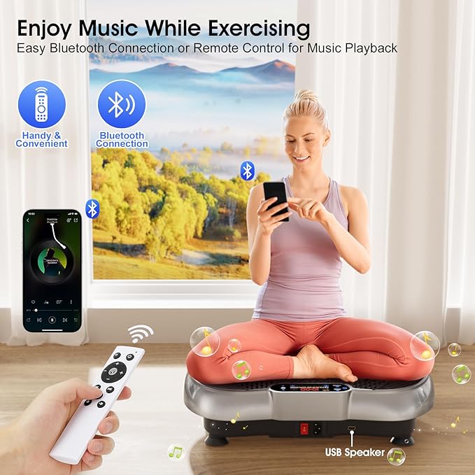 - ✅【Why Choose Anyrap Vibration Plate?】:High Power & Ultra-quiet motor; Can be used as BT speaker; Bigger size than traditional ones; LED display shows time, speed; Magnet health massage function;Compact & easy to carry and store;Anti-slip coating designed;Enhanced upgraded ergonomic design shell makes it can load capacity up to 330 lbs and ensure more durability and stability; Easy to operate with controller while exercising; Up to 6.6Ft Long power cord.