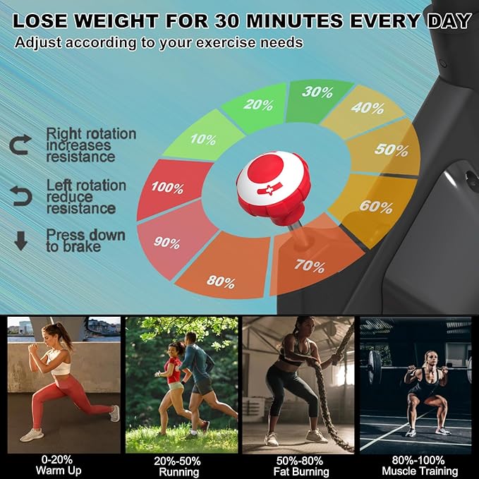 - 【EXERCISE BIKE FOR HOME 】Heavy-duty steel frame of the exercise bike guarantee the stability while cycling.It supports up to 300 lbs max weight.Infinite resistance system and Belt Drive System can ensure that you are in a stable state during exercise.Provide you with a smooth and silent riding experience.Suitable for all fitness levels.