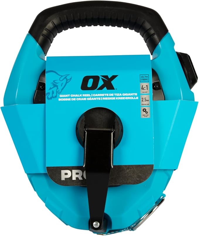 OX Pro Contractor Giant Chalk Line 150ft Quick-Wind Cotton Nylon Extra Bold Line Chalk Reel ABS Plastic Body with Rubber Grip - 4:1 Gear Ratio Professional Grade Marking Tool OX-P630703