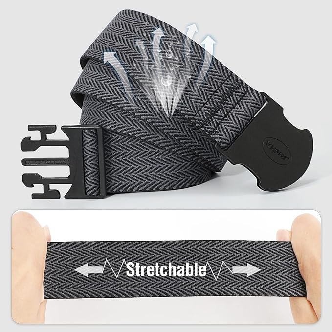 - Unisex Elastic Belt for Women Men - Made of premium polyester material, lightweight and comfortable to wear. Non-metal quick release buckle is easy to use. The belt buckle lays flat and It's like you're not wearing a belt.