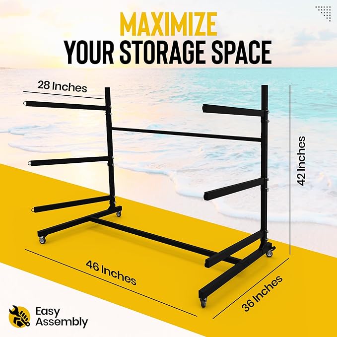 - Heavy Duty | Built to last, this kayak storage rack freestanding system is made from durable materials that support heavy loads. Ideal for use as a stand up paddleboard rack or a dock kayak rack, it’s strong enough for large kayaks, canoes, and boards. Whether you need a kayak rack for dock or a paddle board storage rack, this kayak stand delivers unmatched durability. It’s a great option for kayak storage racks for outside and freestanding kayak storage racks.