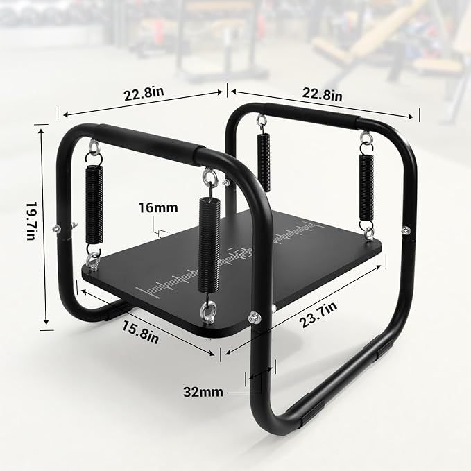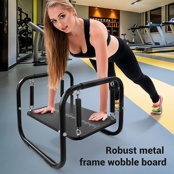 - Wobble Board Size: Robust metal frame 58x58x50cm/22.8x22.8x19.7inch ,Wood board 60x40x1.6cm/23.7x15.8x0.63inch, balance training board come with metal frame, wood board, heavy-duty black springs up to 100kg/220lbs , grey springs up to 150kg/330lbs