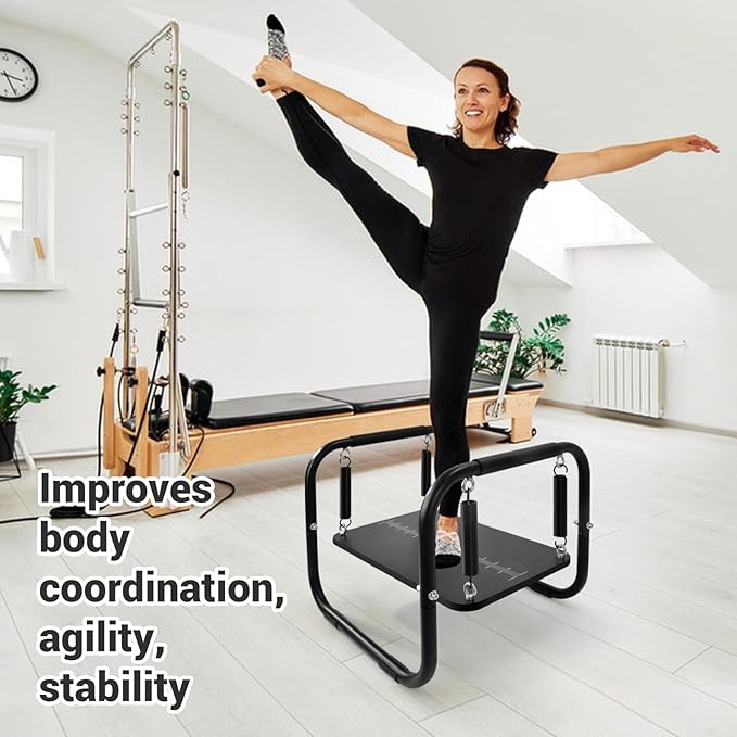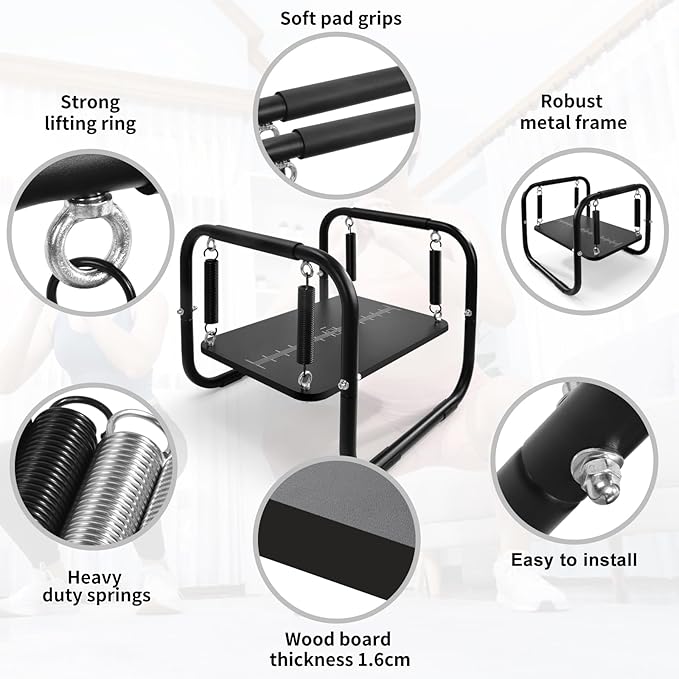 - Wood Balancing Board: The wood board is suspended by heavy-duty springs and allows the board to swing in any directions from side to side, front to back and up and down