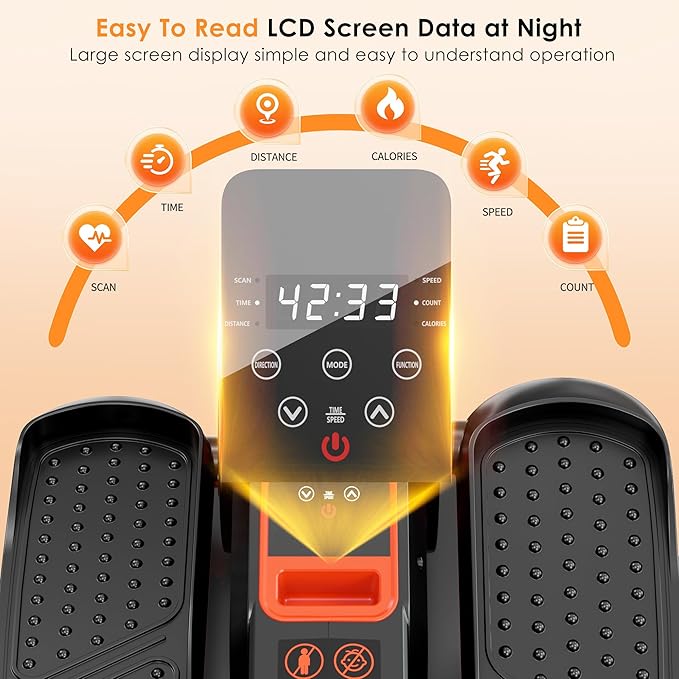 - 【Data Monitoring&Remote Control】The seated elliptical machine assisted coach is equipped with a LCD display that can track your calories, scan, time, and count, and control your fitness journey through real-time data. The elliptical machine for seniors device is equipped with a thoughtful remote control, allowing you to change modes without bending over and reduce back pressure.Due to logistics reasons, the remote control is not equipped with a battery and you will need to purchase it separately