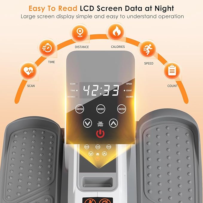 - 【Data Monitoring&Remote Control】The seated elliptical machine assisted coach is equipped with a LCD display that can track your calories, scan, time, and count, and control your fitness journey through real-time data. The elliptical machine for seniors device is equipped with a thoughtful remote control, allowing you to change modes without bending over and reduce back pressure.Due to logistics reasons, the remote control is not equipped with a battery and you will need to purchase it separately