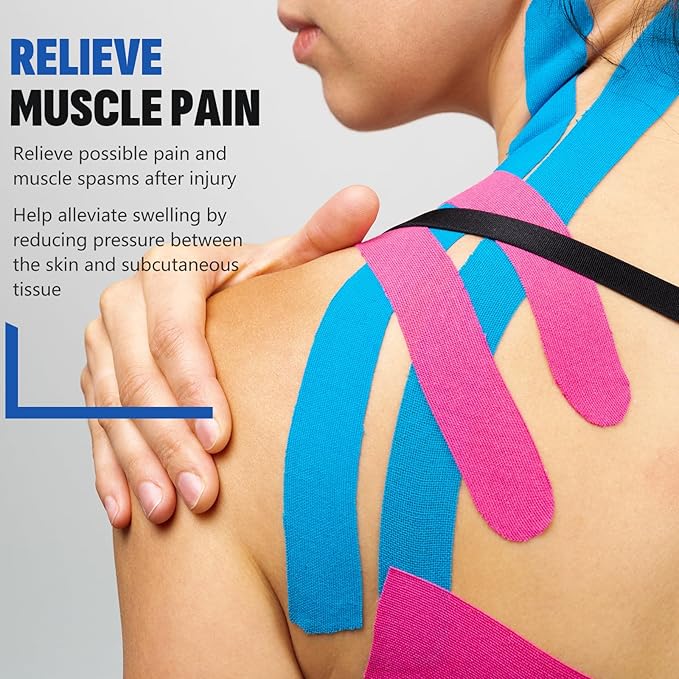 - 【Skin friendly】Our athletic tapes are latex-free formula minimizes discomfort for sensitive skin. You can use these muscle tapes on your neck, shoulders, waist, legs, and ankles to support muscle movement during activity