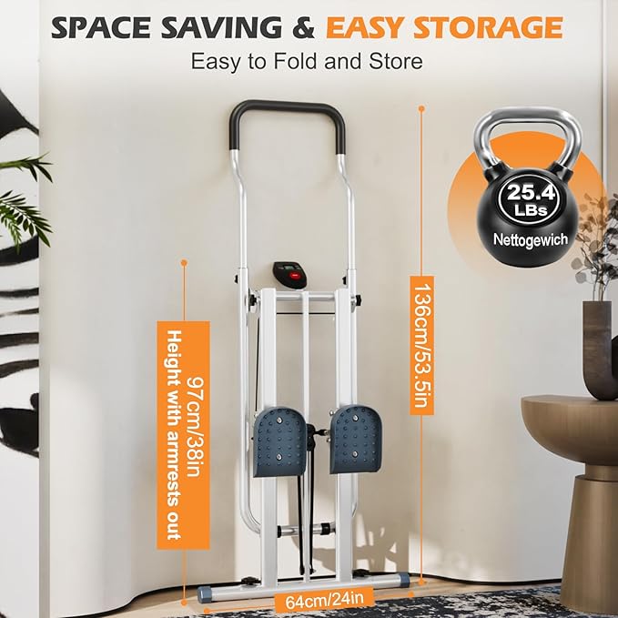Vertical Climber Stair Stepper for Home, 300LBS Loading Capacity, Compact Folding Cardio Exercise Climber with Adjustable Step Range