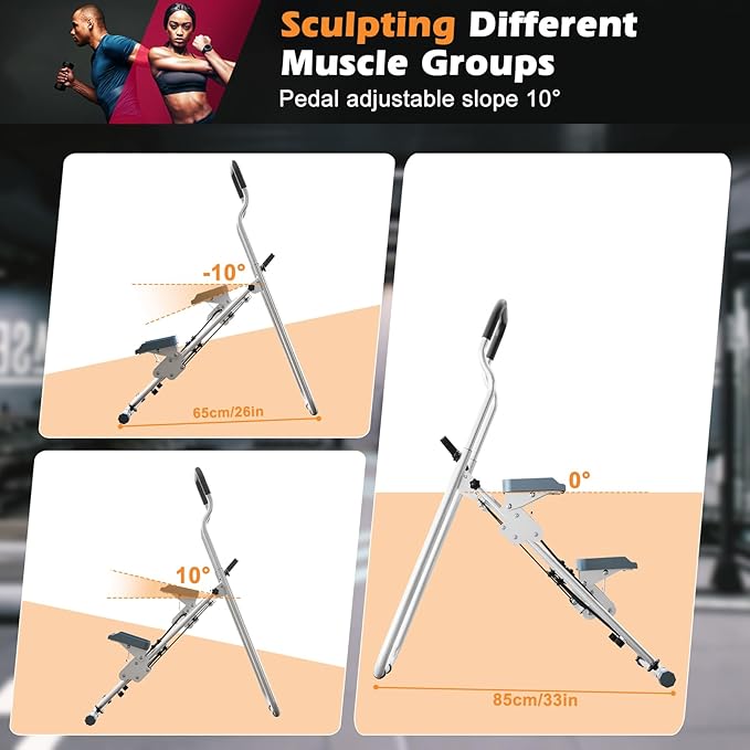 - Scientific Stride Length: The vertical stair stepper scientific stride length is designed to give you a full muscle workout while avoiding knee and leg injuries.20-inch stride length and 45° incline angle make you feel like you're climbing stairs and hiking in real life, providing the perfect professional workout for your legs and hips to get in shape in the shortest amount of time.
