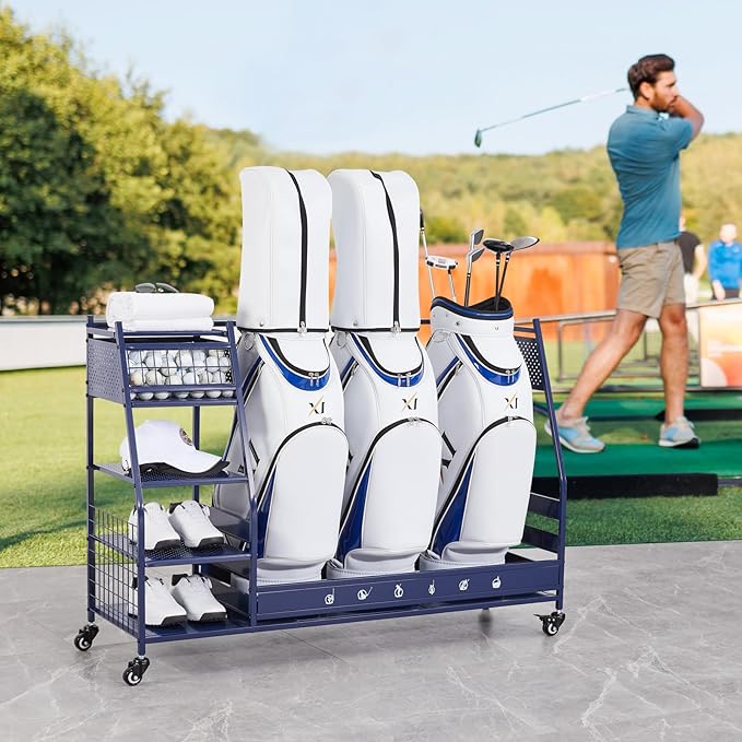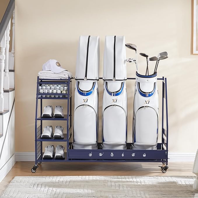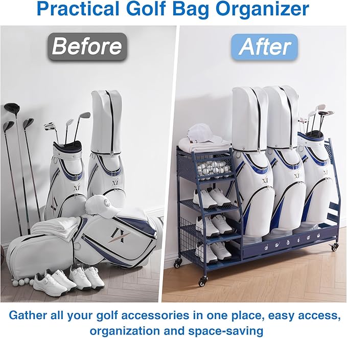 - Multi Occasions: Our golf bag storage can organize almost all your golf accessories, keep your sports and golf equipment in one place, say goodbye to cluttered garages, basements, homes, yoga studios, golf clubs, athletic departments, and storage rooms that are easy to access and space-saving. Valentine's Day is coming up, this superior quality uniquely designed golf ball rack is the ideal Valentine's gift for your boyfriend or husband