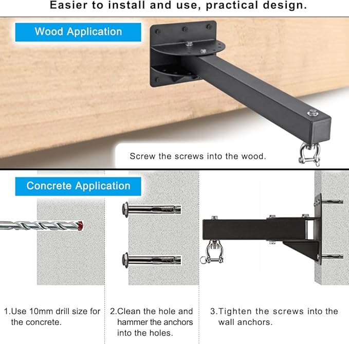 SELEWARE Wall Mount Heavy Bag Hanger Heavy Duty Punching Bag Hanger Adjustable Boxing Bag Bracket for Home Gym Indoor Outdoor Boxing, Muay Thai and MMA Training