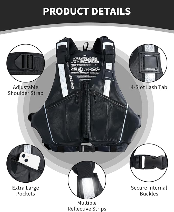 Owntop Swim Vest for Adults | Unrestricted Arm Movement | Extra-Large Pockets | Super-Thin | Kayak, Boating, Fishing