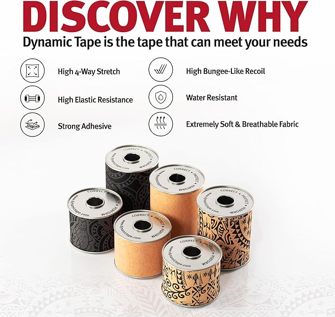 Dynamic Tape Original | Biomechanical Adhesive Tape | Physio Tape for Knee, Ankle, Shoulder, Leg, Muscle Support | Sports Tape for Football, Rugby, Ideal for Athletes | Beige & Black - 2" (6)