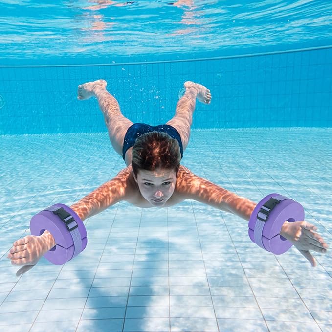 Carperipher Water Aerobics Set for Aquatic Exercise, Pool Fitness Equipment Foam Water Dumbbell Set, New Upgrade Aquatic Dumbbells and Foam Swim Aquatic Cuffs, Water Workout Fitness Tool(Purple)