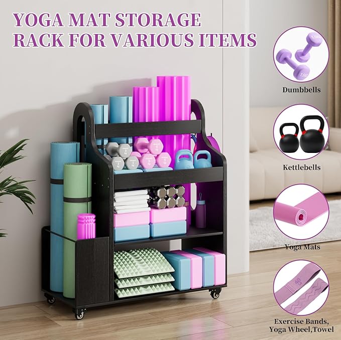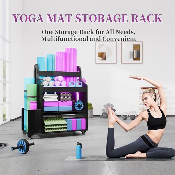 - Widening Back Yoga Mat Area: Suniboxi Yoga mat storage rack widens the shelf width to accommodate more yoga mats or other exercise equipment, easy to organize your space and stay organized.