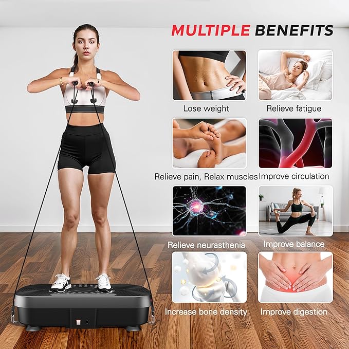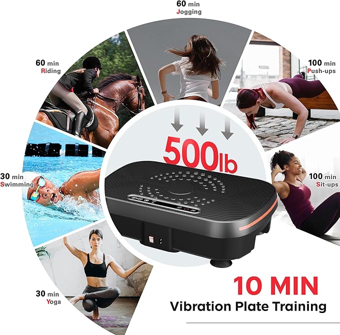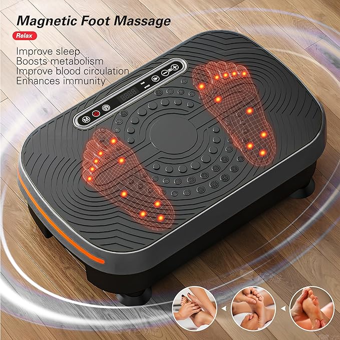 - 【Efficient Fat Burning】Step onto Soges vibration plate exercise machine and sculpt your ideal figure instantly! The vibration plate stimulates muscles through high-frequency vibrations, inducing additional muscle contractions and activation. This helps burn calories and fat rapidly, aiding in shedding excess weight faster than running, helping you achieve your fitness goals swiftly.