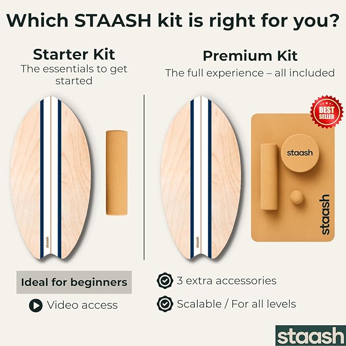 STAASH® Balance Board – Starter (Board + Roller) or Full Kit (w/Mat, Ball & Disc) – Core Balance Trainer for Fitness, Rehab, Surf – Free Coaching Videos