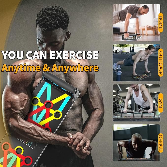- CONVENIENT AND SPACE-SAVING: The multifunctional push-up board can be folded for easy portability, allowing you to work out anytime and anywhere. It can be used at home, in the office, at the gym, outdoors, and in other locations.