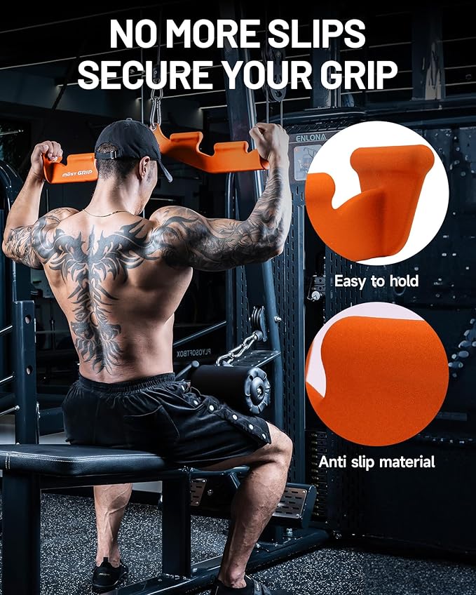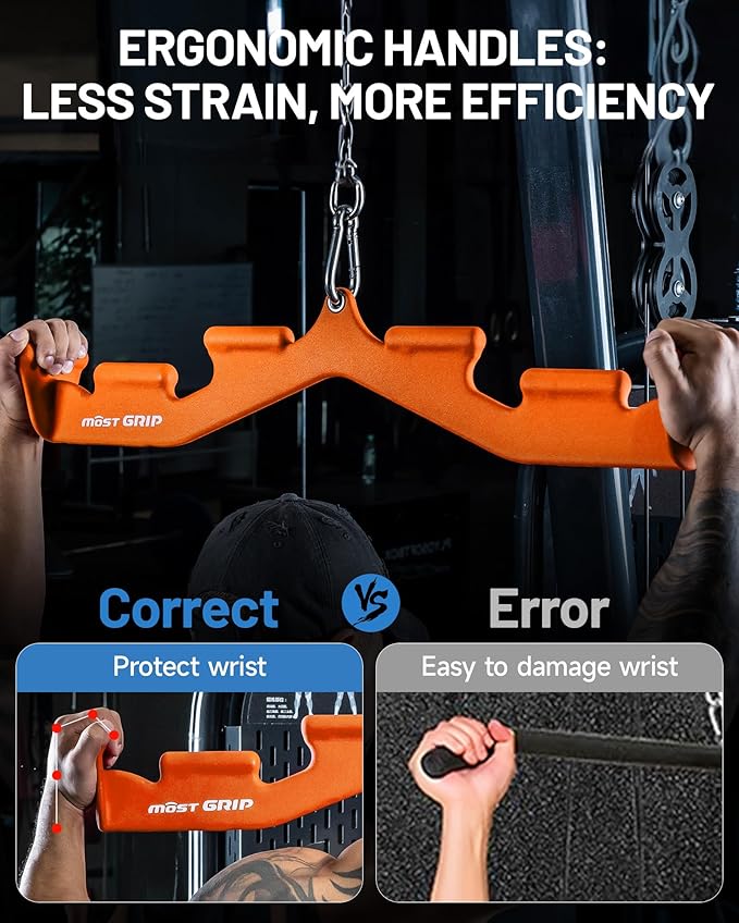 - 💪 Versatile 3-Grip Design for Total Back Development: Maximize your back workouts with the MOST GRIP Lat Pull Down Bar (Registration in process: US 29/959,858). With three grip positions—wide, narrow, and neutral—you can effectively target the lats, rhomboids, and teres for a complete upper body workout. Say goodbye to boring routines! This bar enhances back, biceps, and triceps, giving you a versatile workout in one tool.