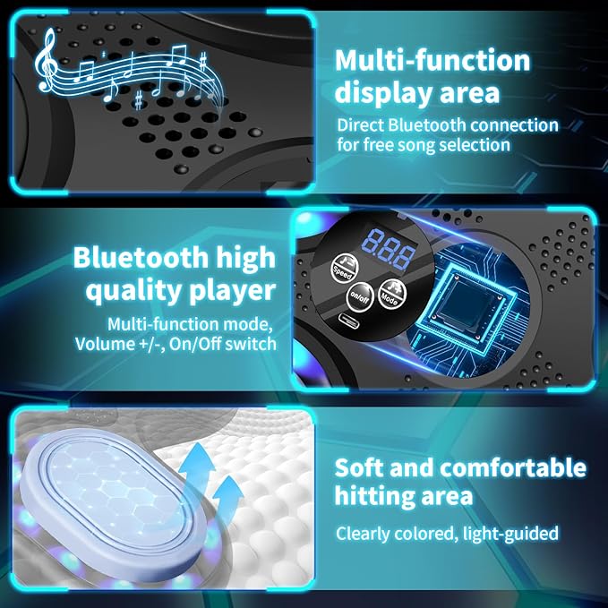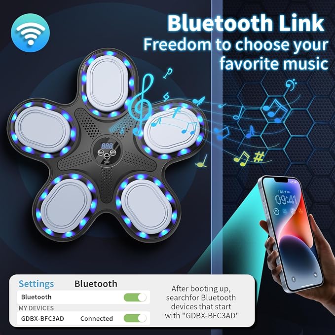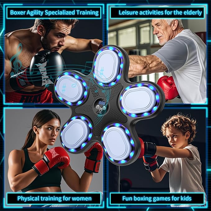 - 【Upgraded Music Boxing Machine】Enhance your boxing experience with our musical boxing machine, LED boxing light effects, connect your phone via smart wireless to play your favorite music during boxing training, stereo surround sound immerses you in the rhythm and Melodies that make your workouts fun and motivational.