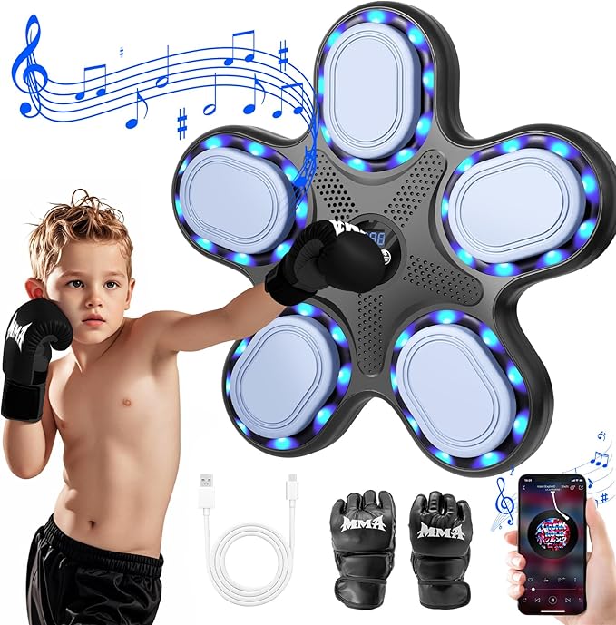 Music Boxing Machine for Kids: Interactive LED Punching Bag with Safe Gloves, Home Fitness Equipment for Agility Training& Rhythm Games
