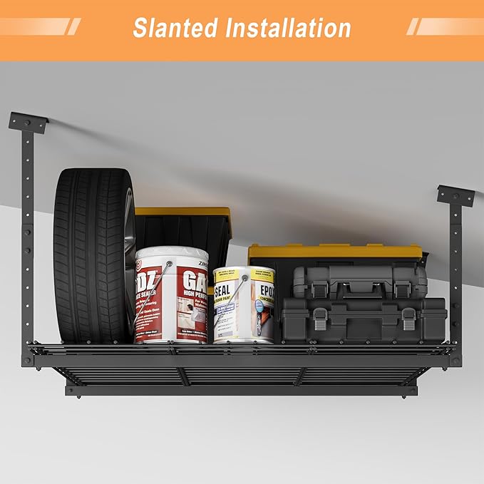 - 🔧【Quick Installation】- On any Ceiling Joists ≤42". Pre-drilled universal mounting brackets work with all standard joist spacing. No complex measurements – install this overhead garage storage rack in under 1 hour using basic tools.