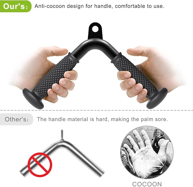- 【Double D Handle】Double D Handle are designed with non-slip soft rubber grips and high-quality aluminum bars for strength. Perfect for working out triceps, biceps, back, shoulders, chest, and abs, allowing for a variety of exercises like seated rowing and landmine exercises