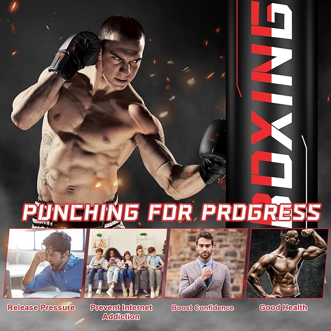 - Upgraded Boxing Punching Bag Set: Our boxing training equipment includes a free-standing punching bag, a pair of boxing gloves, and an electric air pump. No need to purchase an extra pump—it's easy to inflate, saving you time and effort. The gloves feature thick padding and an adjustable wrist strap design, offering top-level protection for your hands, so you can punch with confidence and power