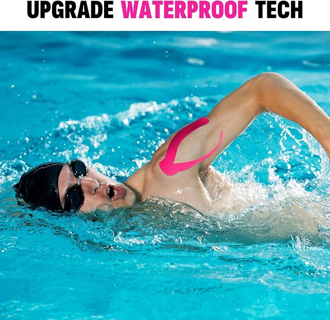 - 【Waterproof Kinetic Tape】We have upgraded the cotton material and adhesive of the kinetic tape, and adopted a unique water ripple design to make our muscle tape water resistant and sweat resistant. They can stick tightly to the skin all the time, even after multiple sweating and showering, the tape remains securely in place