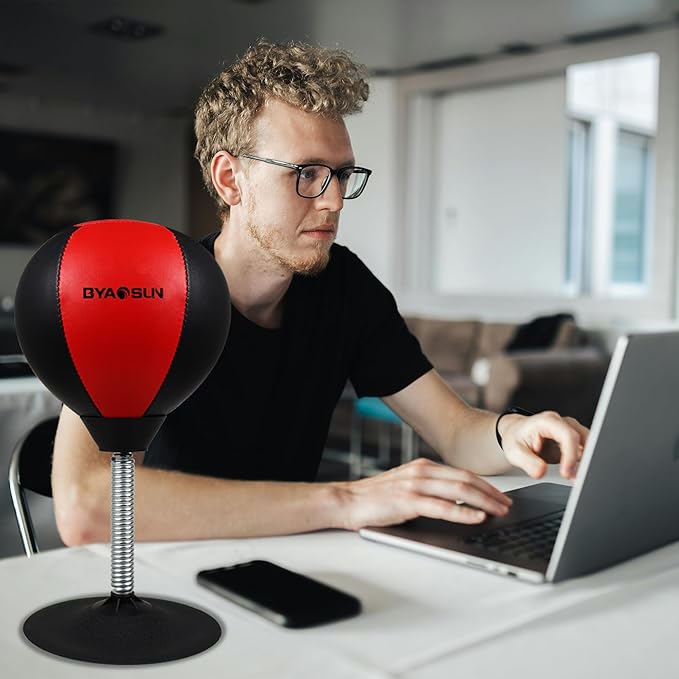 - 【Durable Material & Soft Surface】Our desktop punching bags are made high quality materials to make sure they last. The elastic springs ensure continuous rebound without breaking, providing long-lasting performance.The punching ball has a soft material ,you won't be needing a pair of boxing gloves when hitting, it won't hurt your hands.