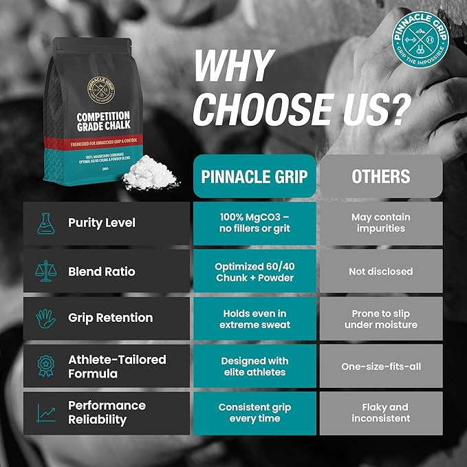 - Unrivaled Grip Performance - Engineered with a refined 60/40 chunk-to-powder blend of pure magnesium carbonate, our professional athletic chalk delivers superior hold even during intense sweat.