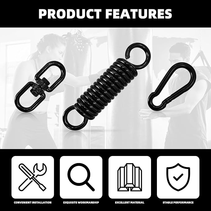 Heavy Bag Spring Punching Bag Hanging Kit with Swivel & 2 Carabiners, 360° Rotational Heavy Duty Punching Bag Hanger Mount Accessory for Boxing Bag, Heavy Bag, Gym Swing, Trapeze