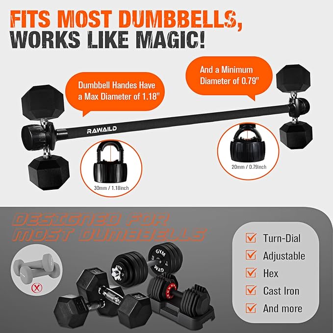- Special Feature : bar for dumbbells attachment, barbell converter bar, Non-Slip, dumbbell barbell converter bar, Adjustable Weight bar for dumbbells attachment, barbell converter bar, Non-Slip, dumbbell barbell converter bar, Adjustable Weight