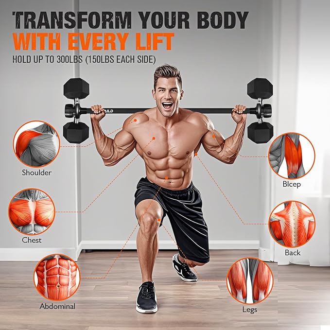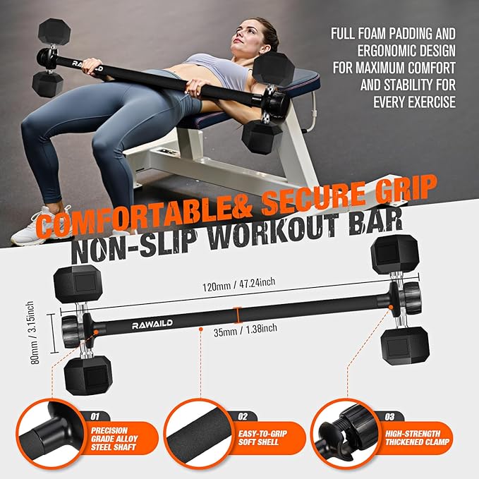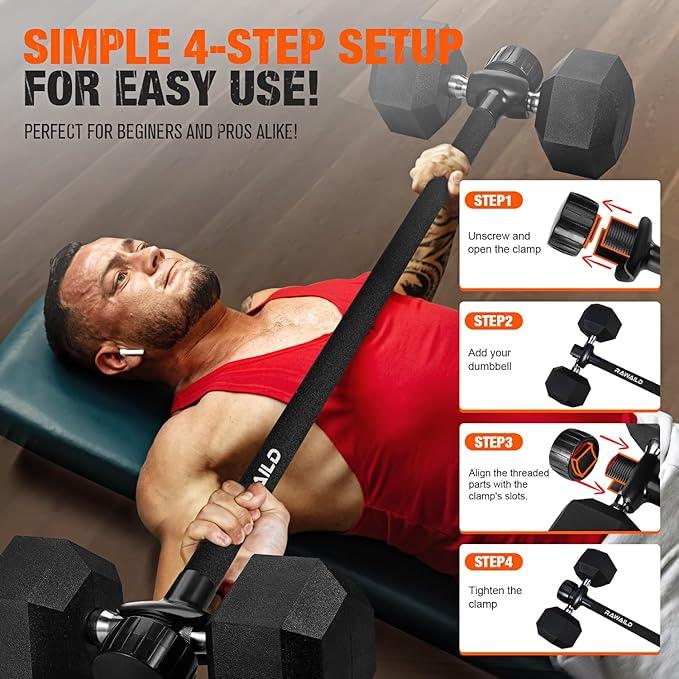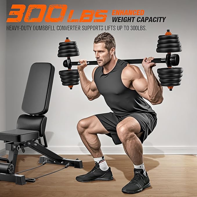 - 【Versatile Multi-Functional Gym Equipment】 Transform your dumbbells into a full barbell set instantly! Perfect for bench presses, squats, deadlifts, hip thrusts, and more. Maximize your home gym’s potential with one compact, space-saving tool.