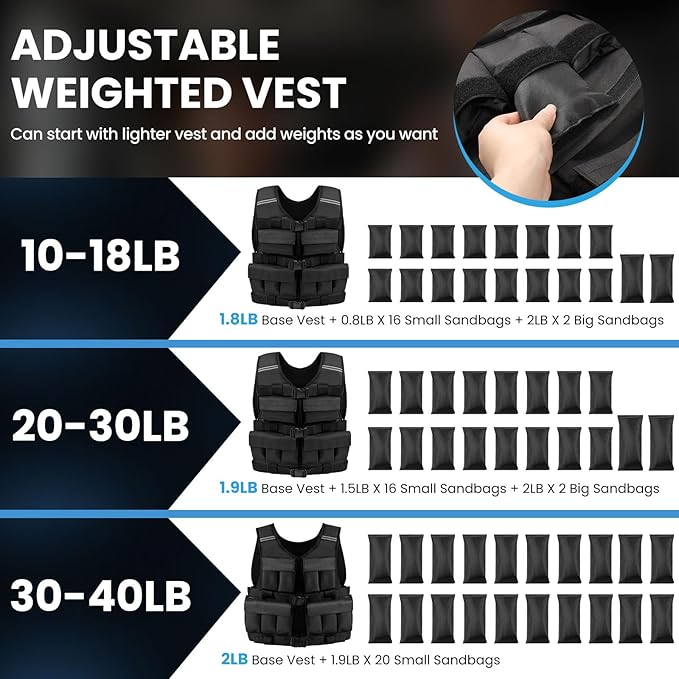 - Even Weight Distribution: DMDG adjustable weighted vest consists of a basic vest and weighted sandbags, so you can start with a lighter weight and then gradually increase it as needed, thereby gradually improving your ability. The weighted vest men has an evenly distributed weight that can exercise your shoulders, back and chest at the same time