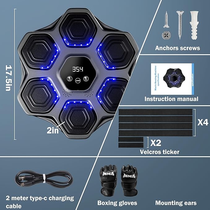 - 【Upgraded Music Boxing Machine】Experience superior sound quality and volume control with our advanced boxing music workout machine. The upgraded intelligent chip adjusts the sensitivity of the striking pads for precise feedback. When the target lights up, punch it to score and improve your reaction speed, coordination, and fitness. Perfect for professional boxers, fitness enthusiasts, adults, and kids alike, it’s the ultimate training and exercise tool