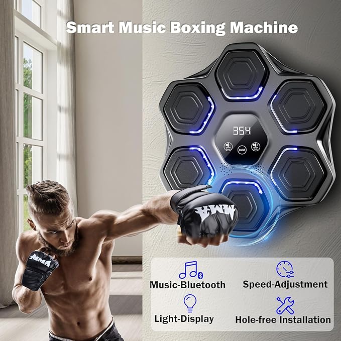 - 【Durable & Hand-Friendly Design】Crafted with high-performance foam for excellent rebound and shock absorption, this boxing music machine protects your hands during intense sessions. Its robust PU material and three-layer shock-absorbing structure ensure durability and safety, making it ideal for high-intensity workouts