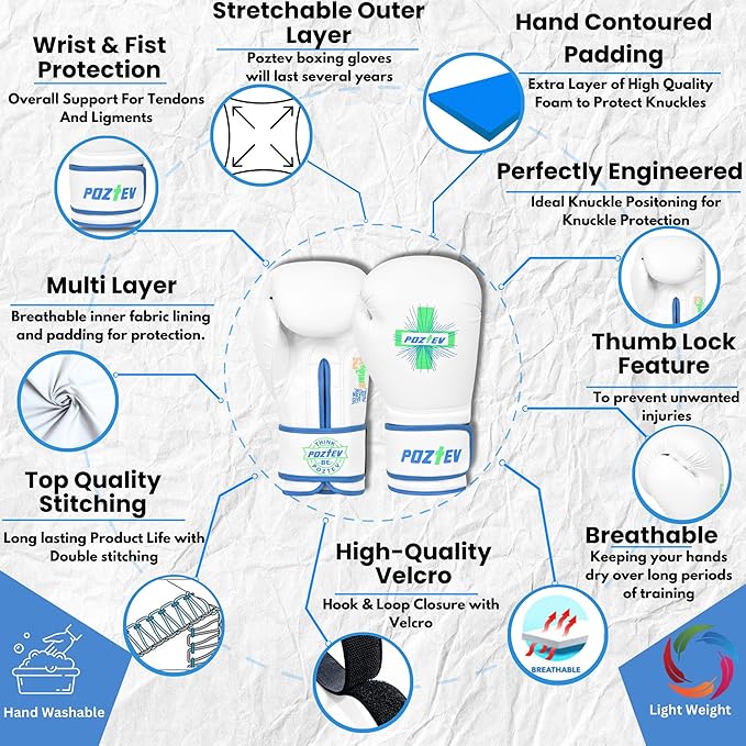 - SUPERIOR PROTECTION & SAFETY: Crafted with multi-layer padding and advanced shock-absorbing technology, POZTEV boxing gloves offer superior protection for your hands and wrists during intense workouts and sparring sessions. Designed to reduce impact and safeguard against injury, these gloves ensure every punch feels solid and safe, letting you focus on training without worry. Ideal for experienced boxers and sparring enthusiasts.